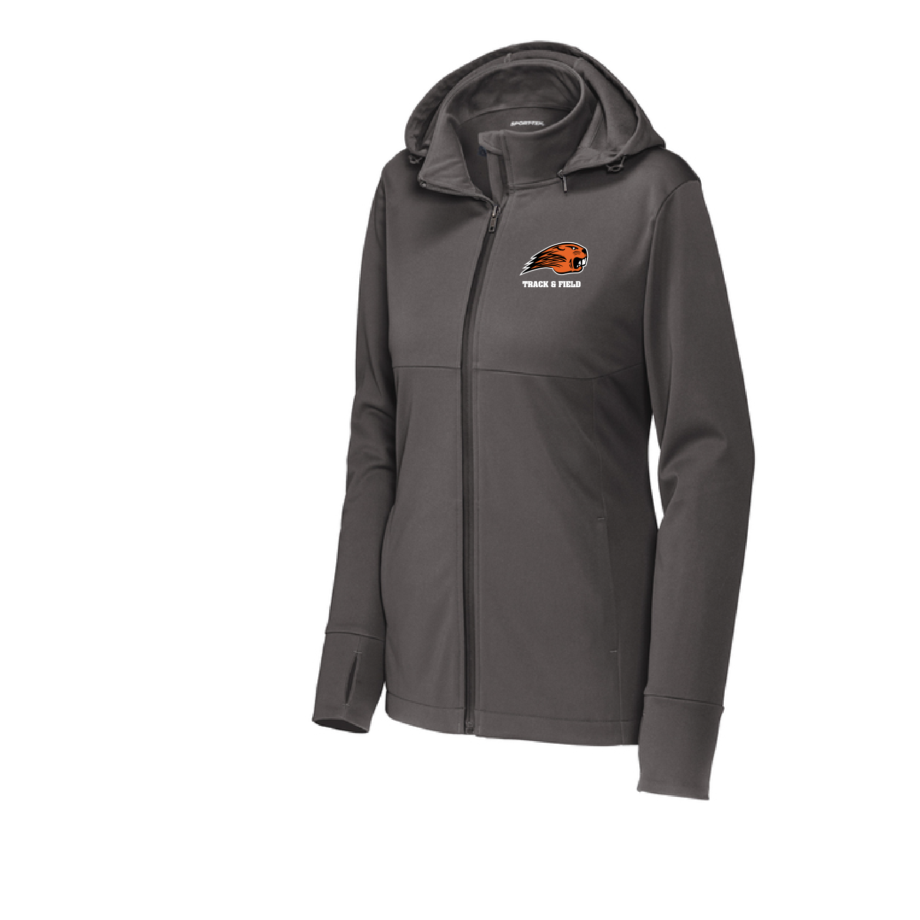 Beavercreek Track & Field – Sport-Tek Women's Hooded Soft Shell Jacket:LST980 — show your Beavercreek High School pride with a clean, everyday design made for Track & Field season.